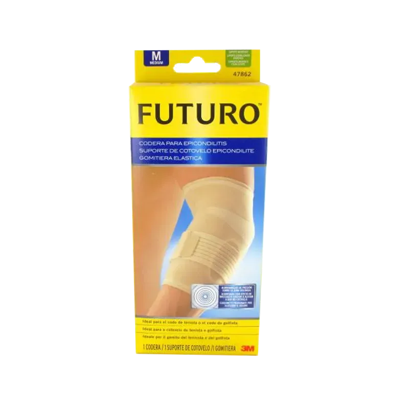 Ayuda a aliviar el dolor en caso de tendinitis, sobrecargas articulares y codo de tenista (epicondilitis lateral) o codo de golfista (epicondilitis media) y para prevenir micro traumatismos de repetición.Las almohadillas proporcionan un efecto de masaje local que contribuye a acelerar el proceso curativo.Aporta compresión en las zonas laterales y media de la articulación del codo.Tira ajustable para una adaptación personalizada y un óptimo nivel de sujeción.Diseño anatómico que permite el movimiento correcto de la articulación del codo. Los materiales, hipoalergénicos y transpirables, ofrecen un gran confort.Materiales de fabricación: poliéster, nylon, algodón y caucho.Marcado CE, no estéril.
