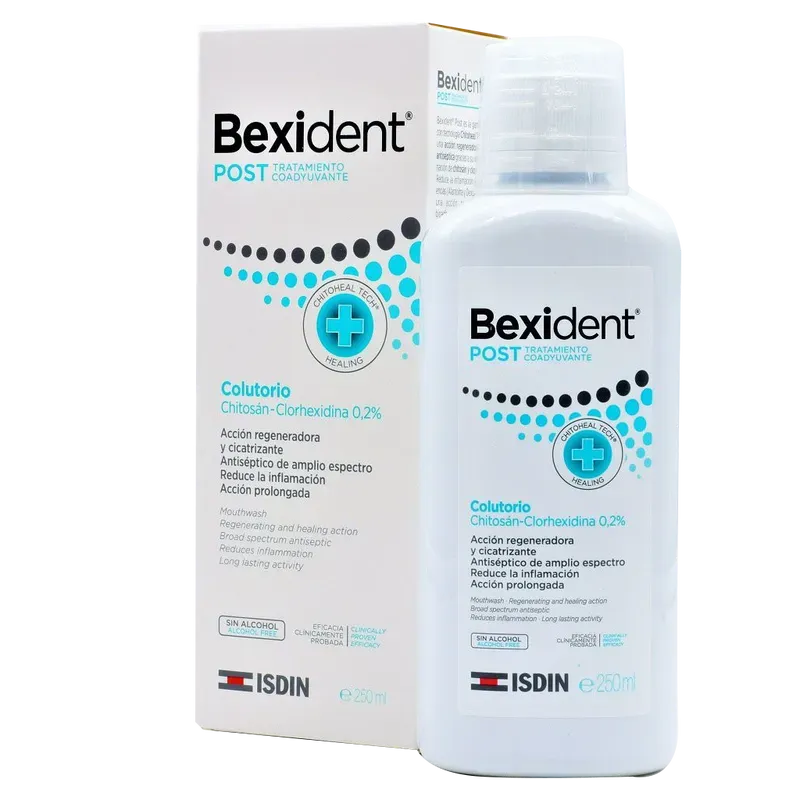Favorece la reducción de la inflamación y protege las encías y la mucosa oral en tratamientos periodontales y preimplantarios.