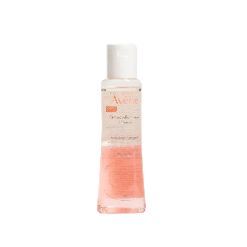 Fórmula bifásica (combinación de Agua termal de Avene calmante y aceites desmaquillantes) elimina el maquillaje resistente reforzando las pestañas.