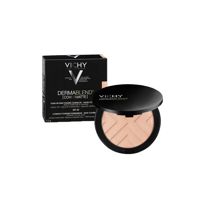 Fondo de maquillaje polvo compacto. Alta cobertura.