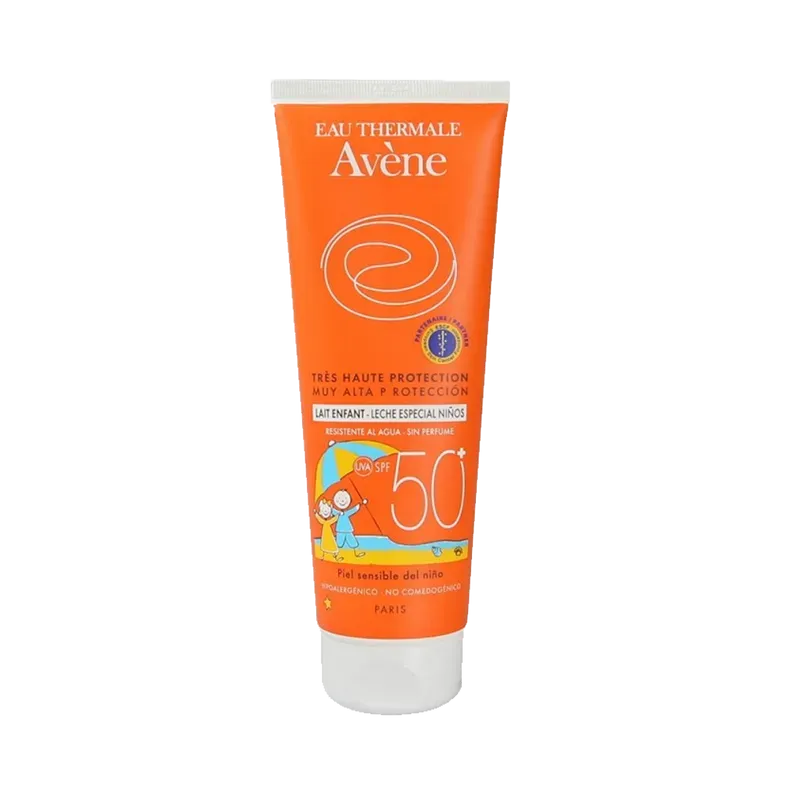 Piel sensible del niño. Cara y cuerpo. Sin perfume. Sin efecto blanco. Muy amplia protección UVB-UVA. Fotoestable.