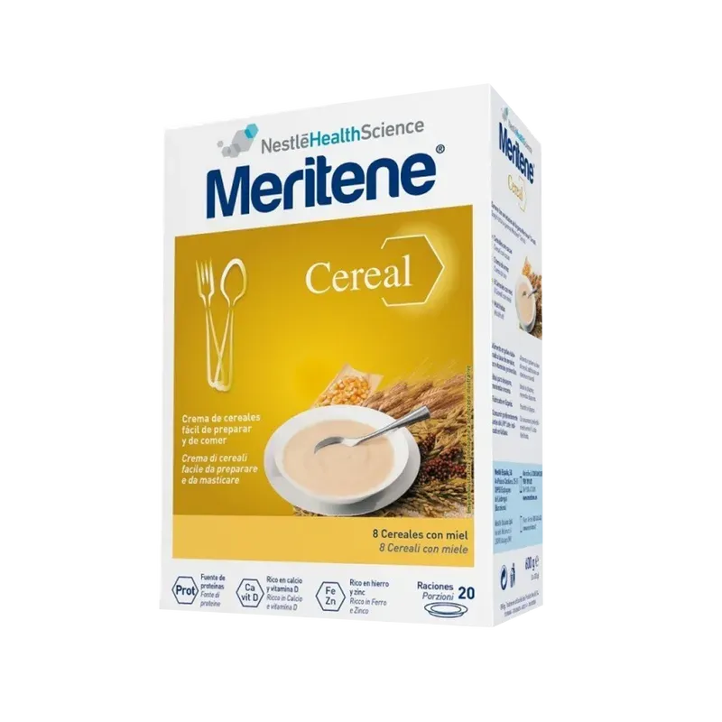 Harinas hidrolizadas (79%) (trigo, maíz, arroz, avena,cebada, centeno, sorgo y mijo), sacarosa, miel (6,5%), maltodextrina, minerales (fosfato cálcico, sulfato de zinc, hierro), aroma, vitaminas (L-ascorbato sódico, nicotinamida, acetato de DL-alfa-tocoferilo, D-pantotenato cálcico, riboflavina, clorhidrato de piridoxina, clorhidrato de tiamina, acetalo de retinilo, ácido pteroilmonoglutámico, D-Biotina, colecalciferol, cianocabalamina) e inositol.