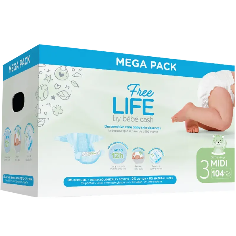 PAÑALES FREE LIFE BEBE CASH ETAPA 3 MIDI 4 A 9 KILOS