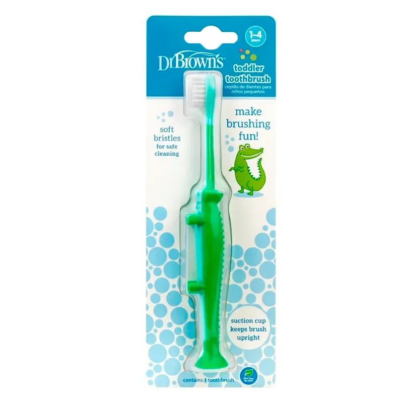 No permita que su niño pequeño camine o gatee con el cepillo de dientes en la mano o en la boca.